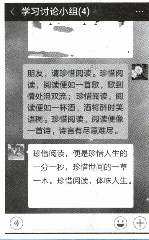 4. 请参照材料三聊天记录中的句式,仿写一段话来表达自己对阅读的看法。(3 分)