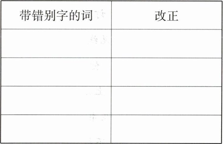 5. 下列词语中有四个错别字,把它们找出来写在表格中,然后改正。(4 分)