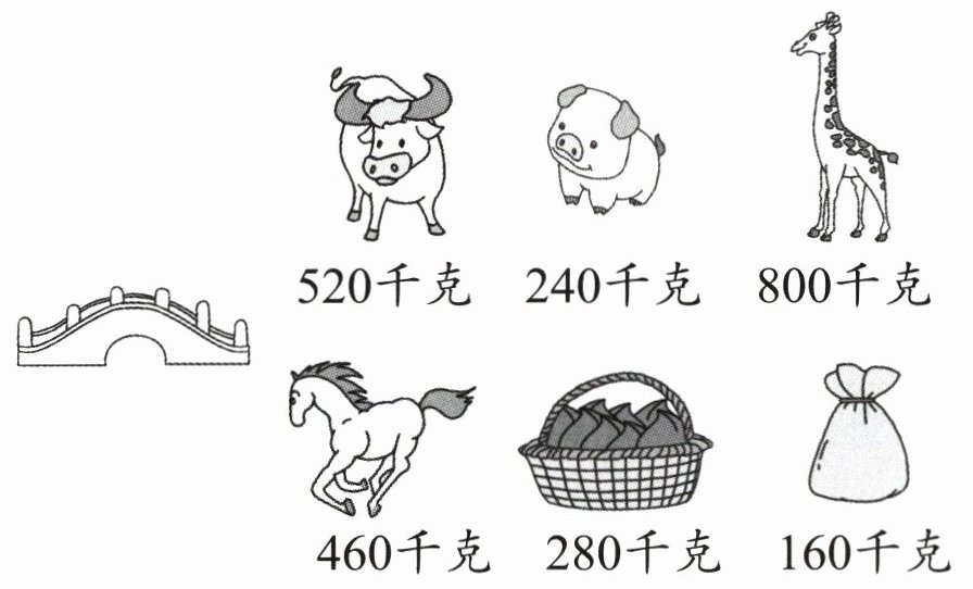 (2)牛和小猪:520 + 240 = 760(千克),760<1000;