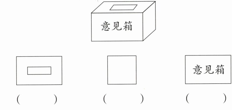 5. 为了收集老师和同学们对运动会的建议,学校为每个年级准备了一个意见箱(如图所示)。下面三幅图分别是从哪个方向看到的? (填“前面”“侧面”或“上面”。)