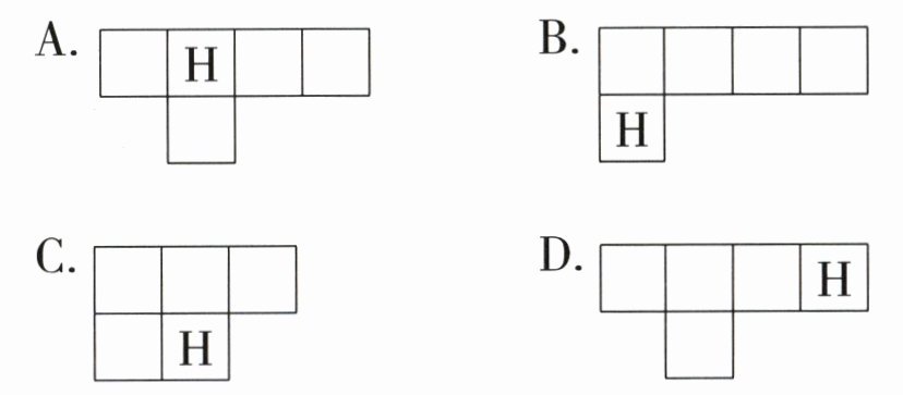 6. 右面是一个无盖的正方体包装盒,下底内部标有字母“H”,沿着棱将其剪开,展开成平面图形。这个平面图形可能是(