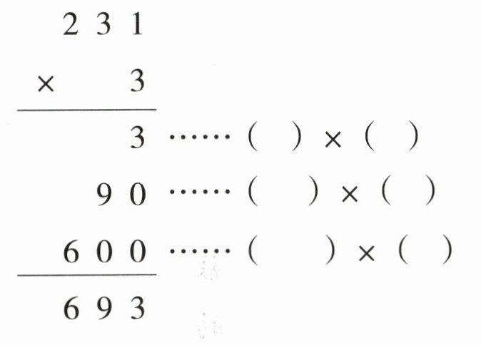 5. 蜣螂俗称屎壳郎,主要以动物粪便为食,它们会将粪便滚成球形,并将其藏起来,以便食用或作为幼虫的食物,因此人们把屎壳郎称为“牧场的清洁工”。解决“牧场里的屎壳郎一天可以清理231千克粪便,3天可以清理多少粪便?”这个问题,列竖