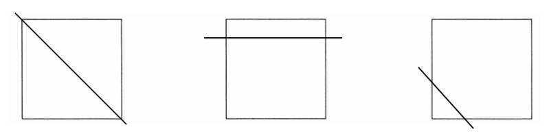 2. 一张正方形纸有4个角,用剪刀剪去一个角,还剩几个角?你有几种答案?在下面画一画。(9分)