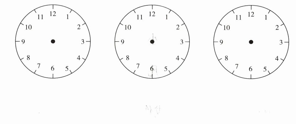 在第一个钟面上,将12个数字之间等分为2份,涂色其中6份(半圆);