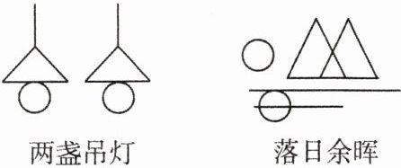 12. 画一画:用两个圆、两个三角形和两条直线为条件,画出两个独特且具有意义的图形,并命名.