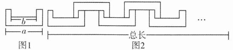 15. 如图 1 所示的图形是一个对称图形,且每个角都是直角. 小明按图 2 所示方法玩拼图游戏,将图 1 两两相扣,相互间不留空隙,那么小明用 9 个这样的图形拼出来的图形的总长度是