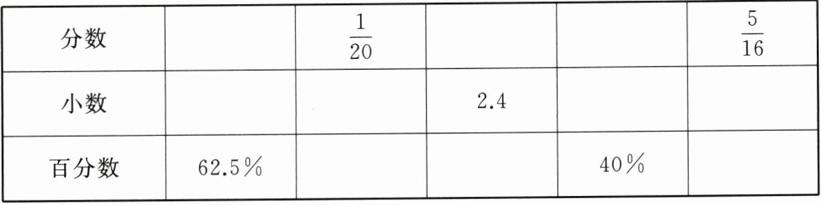 | 百分数 | $62.5\%$ | | | $40\%$ | |