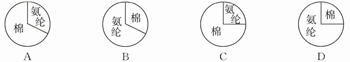 4.某种布料是由75%的棉和25%的氨纶组成的,下面( )统计图能正确表示这个信息。