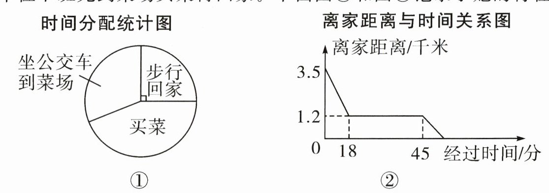 6.王阿姨从单位下班先到菜场买菜再回家。下面图①和图②记录了她的行程。