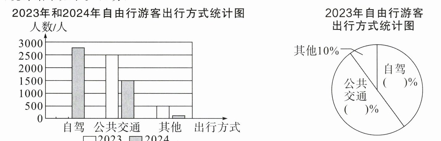 2.旅游公司做市场调研时,对某地区2023年和2024年自由行游客的出行方式进行了统计,统计结果如下。(9分)