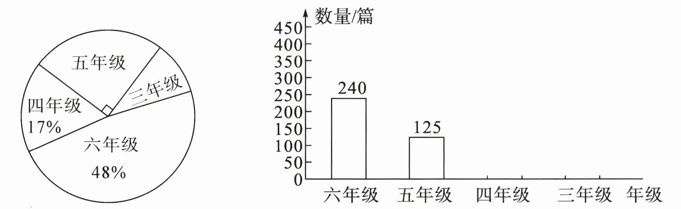 (2)四年级投稿数量比五年级少( )%。(3分)