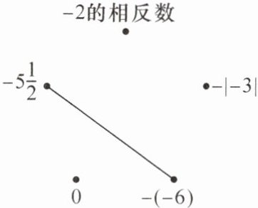 解:因为−|−3|=−3,−(−6)=6,−2的相反数是2,所以−5$\frac{1}{2}$<−|−3|<0<−2的相反数<−(−6).按由小到大的顺序依次连接各点,如图,它是五角星.