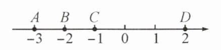 8. 如图,数轴上A,B,C,D四点中,表示的数与$-1.7$最接近的是(