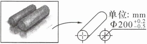 12. 如图,在生产图纸上通常用 $\varPhi200_{-0.5}^{+0.2}$ 来表示轴的加工要求,这里 $\varPhi200$ 表示直径是 $200$ $mm$,$+0.2$ 和 $-0.5$ 是指直径在 $(200 - 0.5)$ $mm$ 到 $(200 + 0.2)$ $mm$ 之间的产品都属于合格产品。现加工一批轴,尺寸要求是 $\varPhi35_{-0.04}^{+0.03}$,请检验直径为 $34.97$ $mm$ 和 $35.04$ $mm$ 的两根轴是否为合格品。