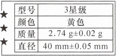 | 质量 | $2.74$ $g\pm0.02$ $g$ |