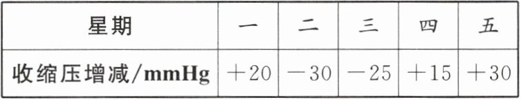 8. (测血压)某病人每天下午需要测量血压,该病人上周日收缩压为120mmHg,下表是该病人这周每天与前一天相比较收缩压的变化情况,则本周星期五该病人的收缩压是