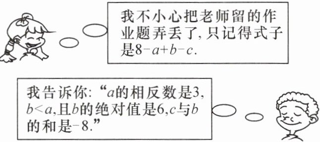 (2)因为a=-3,b=-6,c=-2,所以8-a+b-c=8-(-3)+(-6)-(-2)=8+3-6+2=7.