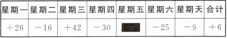 (1)(+6)-(+26)-(-16)-(+42)-(-30)-(-25)-(-9)=6-26+16-42+30+25+9=+18(t).答:星期五的进出数为+18 t;