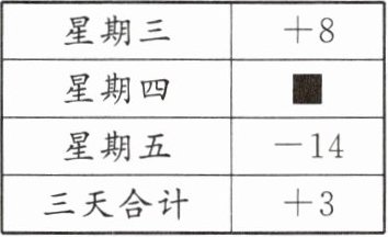 9. (2024·贵阳期中)某快递驿站将收到的快件数记为正数,取走的快件数记为负数.该站点近三天的快件进出情况如表所示,表中星期四的数据被墨水污染了,请你算出星期四快件的进出数为(