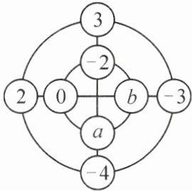 学以致用1:如图,这是一个类似于幻方的“幻圆”,将-3,2,-1,0,1,-2,3,-4分别填入图中的圆圈内,使横、竖,以及内、外两圈上的4个数字之和都相等.现已完成了部分填数,求a,b的值.