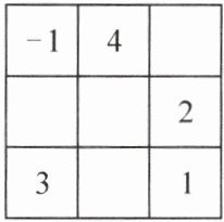 创设推理情境:请按下列要求正确填写幻方:把-4,-3,-2,-1,0,1,2,3,4这9个数除-1,1,2,3,4外填入空格中,构成幻方,并写出推理过程.