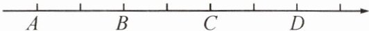 【例 1】如图,已知 $A$,$B$,$C$,$D$ 四个点在一条没有标明原点的数轴上。