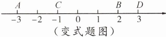 (2)若点 $A$ 和点 $D$ 表示的数互为相反数,则在数轴上表示出原点 $O$ 的位置。