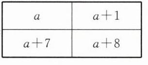 解:填数如图所示.通过观察易得斜对角两数之和相等.验证如下:因为a+(a+8)=2a+8,(a+1)+(a+7)=2a+8,所以a+(a+8)=(a+1)+(a+7).(答案不唯一,如:纵列两数之差相等,言之有理即可)