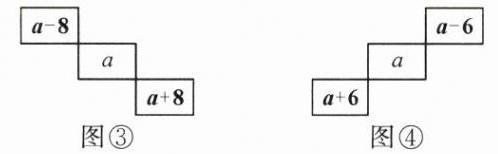 探究3:任意成对角线的三个相邻数,若中间的数用字母a表示,分别在图③、图④上补充其余两个数.