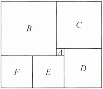 解:设正方形 E 的边长为$x$ cm,则正方形 F 的边长为$x$ cm,正方形 D 的边长为$(x+1)$cm,正方形 B 的边长为$(2x-1)$cm.根据正方形 C 的边长相等列方程,得$x+1+1=2x-1-1$.解得$x=4$.所以正方形 E 和 F 的边长为 4 cm,正方形 D 的边长为 5 cm,正方形 B 的边长为 7 cm,所以长方形的面积为$(7+4)×(4+4+5)=11×13=143(cm^{2})$.