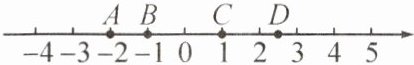 5. 数轴上有 $ A $,$ B $,$ C $,$ D $ 四个点。其中,表示的数的绝对值等于 $ 1 $ 的点是(