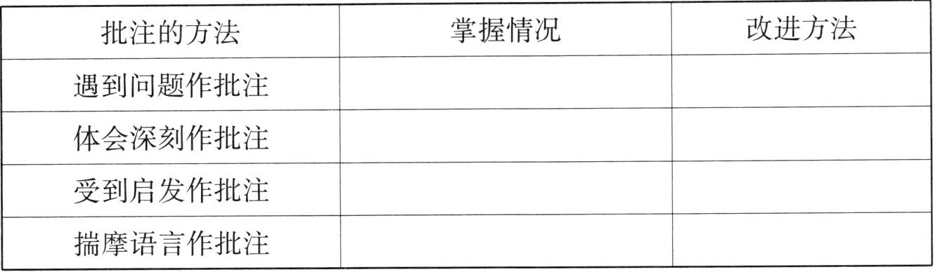 1. 在本单元习作中,我们要尝试运用以下批注方法进行反思与总结。