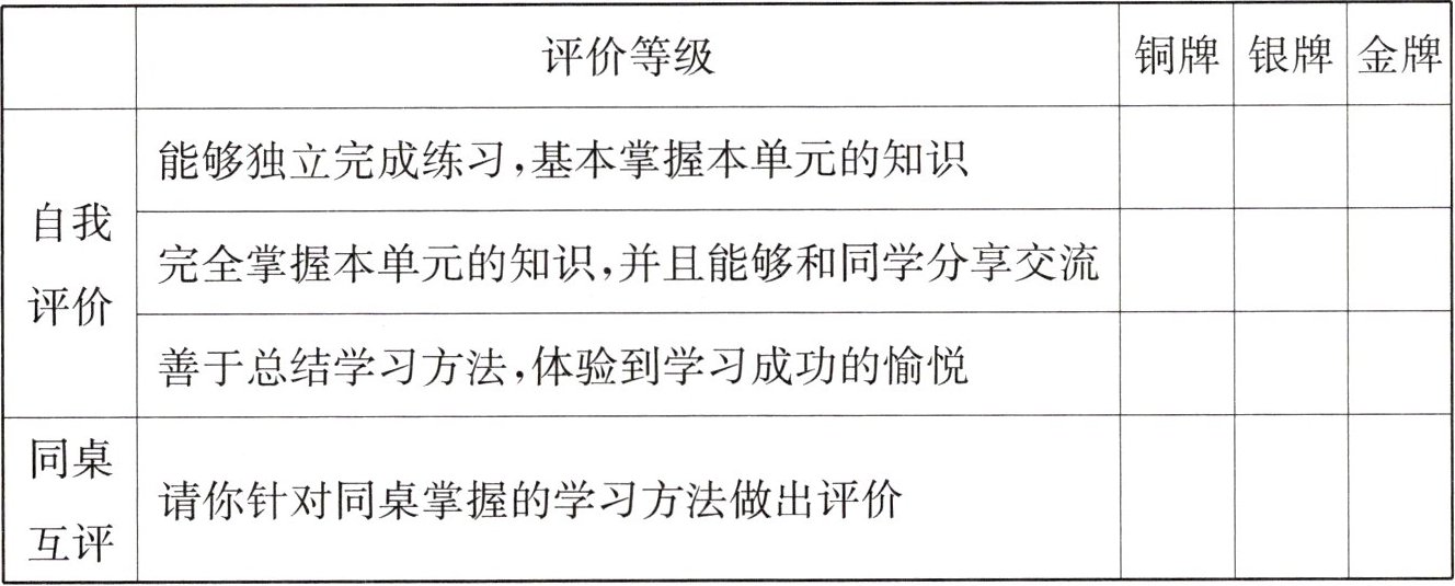 |自我评价|能够独立完成练习,基本掌握本单元的知识|