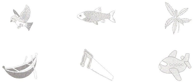 一、人类生活中的很多发明都是受到了自然界中动植物的启发,试着把下列动植物和对应的发明连起来。