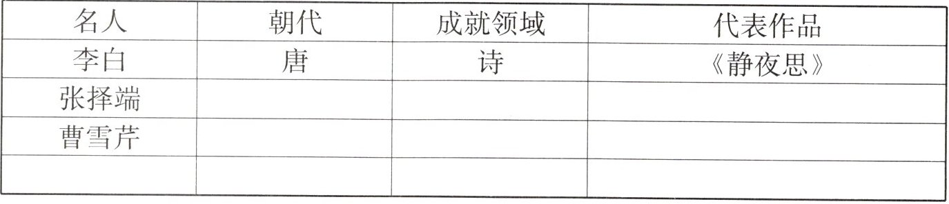 宋 画 《清明上河图》 清 小说 《红楼梦》 示例:李春 隋 建筑 赵州桥