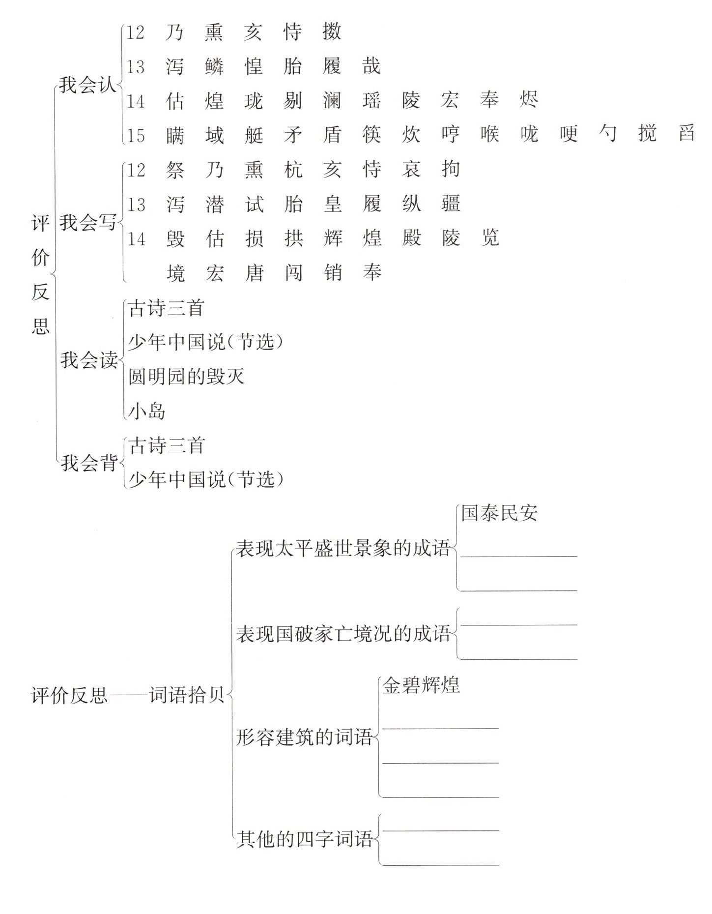 E[评价反思——词语拾贝] --> E1[表现太平盛世景象的成语]