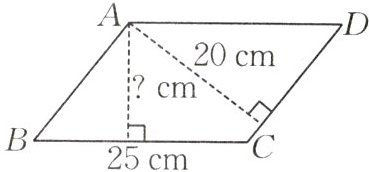 四、如图,一个平行四边形的周长是86 cm,以CD边为底时,对应的高是20 cm,BC边的长为25 cm,BC边上的高是多少厘米?