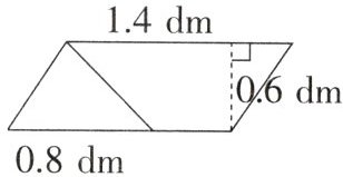 3. 如图,把一个平行四边形剪成一个三角形和一个梯形。平行四边形的高是 $ 0.6 $ dm,那么三角形的面积是(