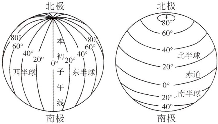 我们生活的城市在地球上的位置也可以利用本单元学习的知识去确定。纬线和经线是人类为度量方便而假设出来的辅助线。从赤道向北和向南各分 90°,称为北纬和南纬,北纬为正数,南纬为负数。经线连接南北两极,东经为正数,西经为负数,本初子午线的经度是 0°。