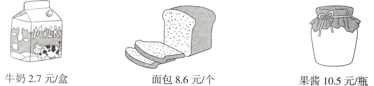 2. 爸爸买了5盒牛奶和5瓶果酱,一共需要多少钱?