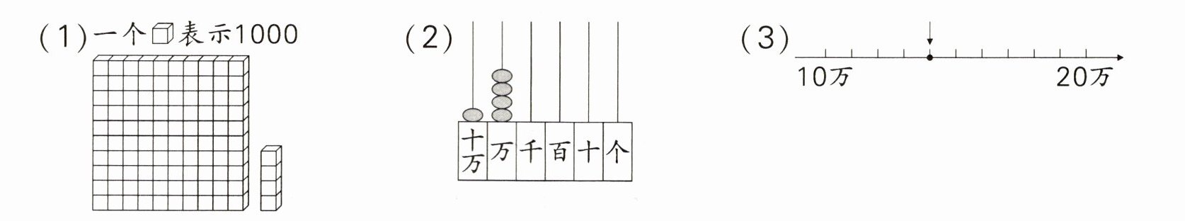 4. 数形结合 元元用下面的方法表示140000,哪种方法是对的?在括号里画“√”。