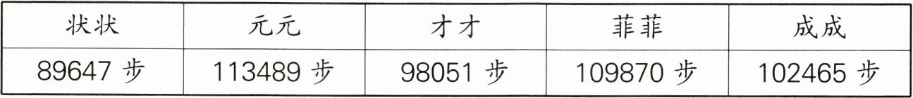 3. “走近自然,走出健康”,下面是五名同学一周走的步数。
