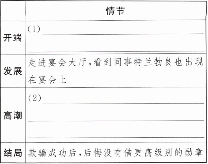 7. (☆课后习题一变式)小说的情节跌宕起伏,请用简洁的语言将表格中的空缺处补充完整。(4分)【见本课“语文要素点津”】