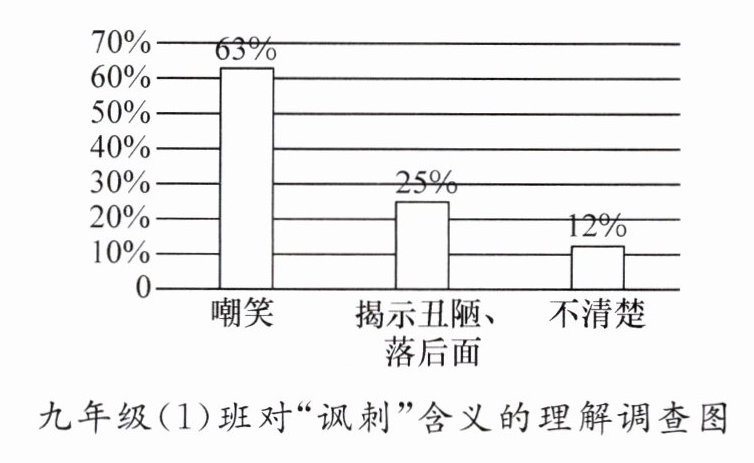 9.(1)D (2)①文学 体裁 ②将“让我们的性情得到陶冶”改为“陶冶我们的性情” (3)九年级(1)班大多数同学对“讽刺”这个词语的意思理解不全面。