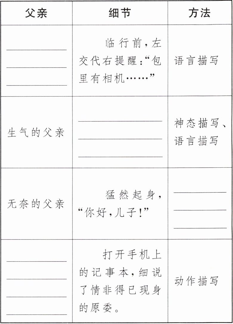 6. 【记事本·父亲印象】请根据提示,完成下面表格(4分)