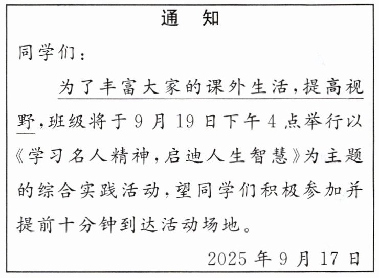 (2)班委会为此次活动拟写了一则通知,请你帮忙修改。