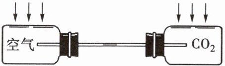 方案一:如下图所示,取两个完全相同的塑料瓶,瓶口加塞子,插入玻璃管(红墨水封在管中),其中一个瓶充入空气,另一瓶中充入二氧化碳。
