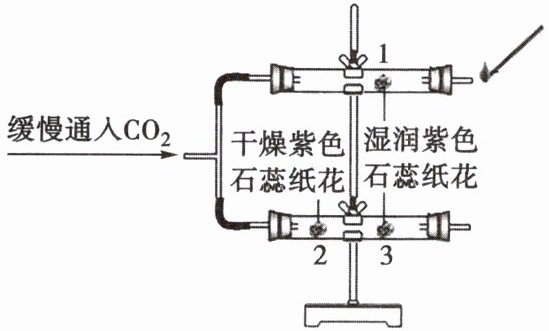 (1)通入${CO_{2}}$前1、3处湿润紫色石蕊纸花不变红;通入${CO_{2}}$后2处干燥紫色石蕊纸花不变红,1、3处湿润紫色石蕊纸花变为红色 试管中3处湿润紫色石蕊纸花比1处湿润紫色石蕊纸花先变成红色