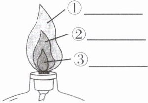 (1) 酒精灯的火焰分为三层,请将各层的名称填写在下图中。