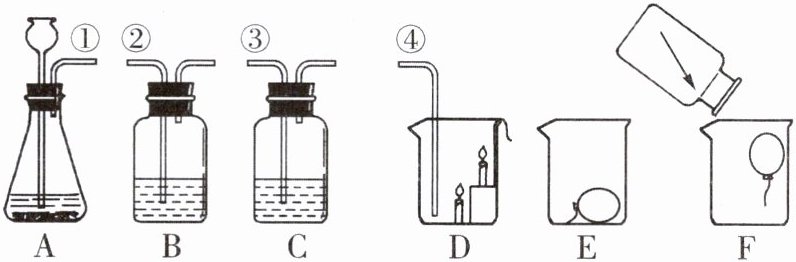(6) 继续设计并进行有关${CO_{2}}$性质的探究实验,如装置${E}$、${F}$。先在装置${E}$中放一个用空气充胀的气球,制取一瓶二氧化碳倒入装置${E}$后,出现如装置${F}$中的实验现象。请写出该实验的目的是探究______。